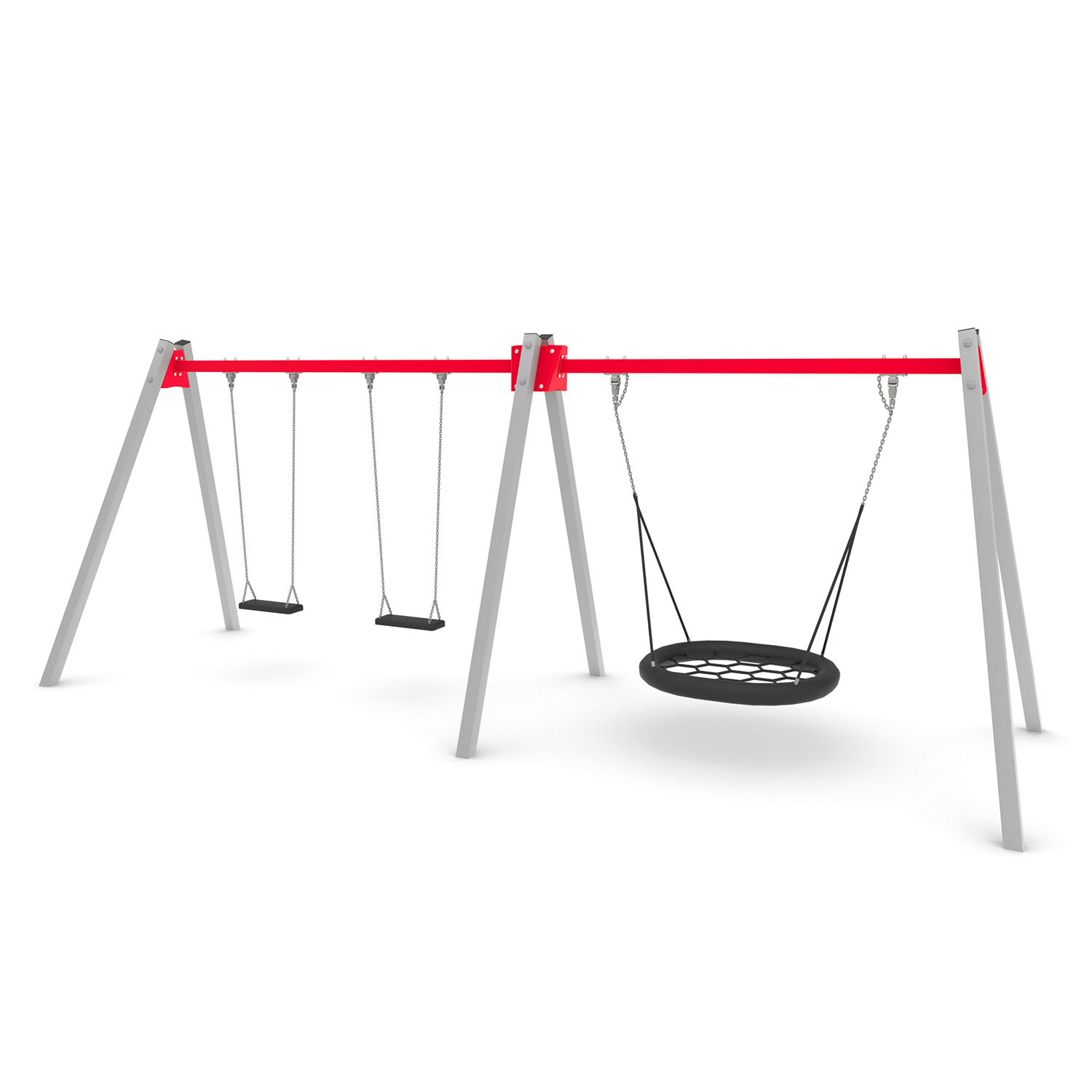 Tukevarakenteinen keinuteline pesäkeinulla / hämähäkkikeinulla ja kahdella istuinpaikalla. Keinu sopii leikkipuistoihin, taloyhtiöille, päiväkoteihin ja kouluihin. Soveltuu 1-vuotiaasta ylöspäin vauvaistuinta käytettäessä. Pesäkeinuistuin sisältyy hintaan. Lauta- ja/tai vauvaistuinsetit tilattava erikseen lisähintaan.