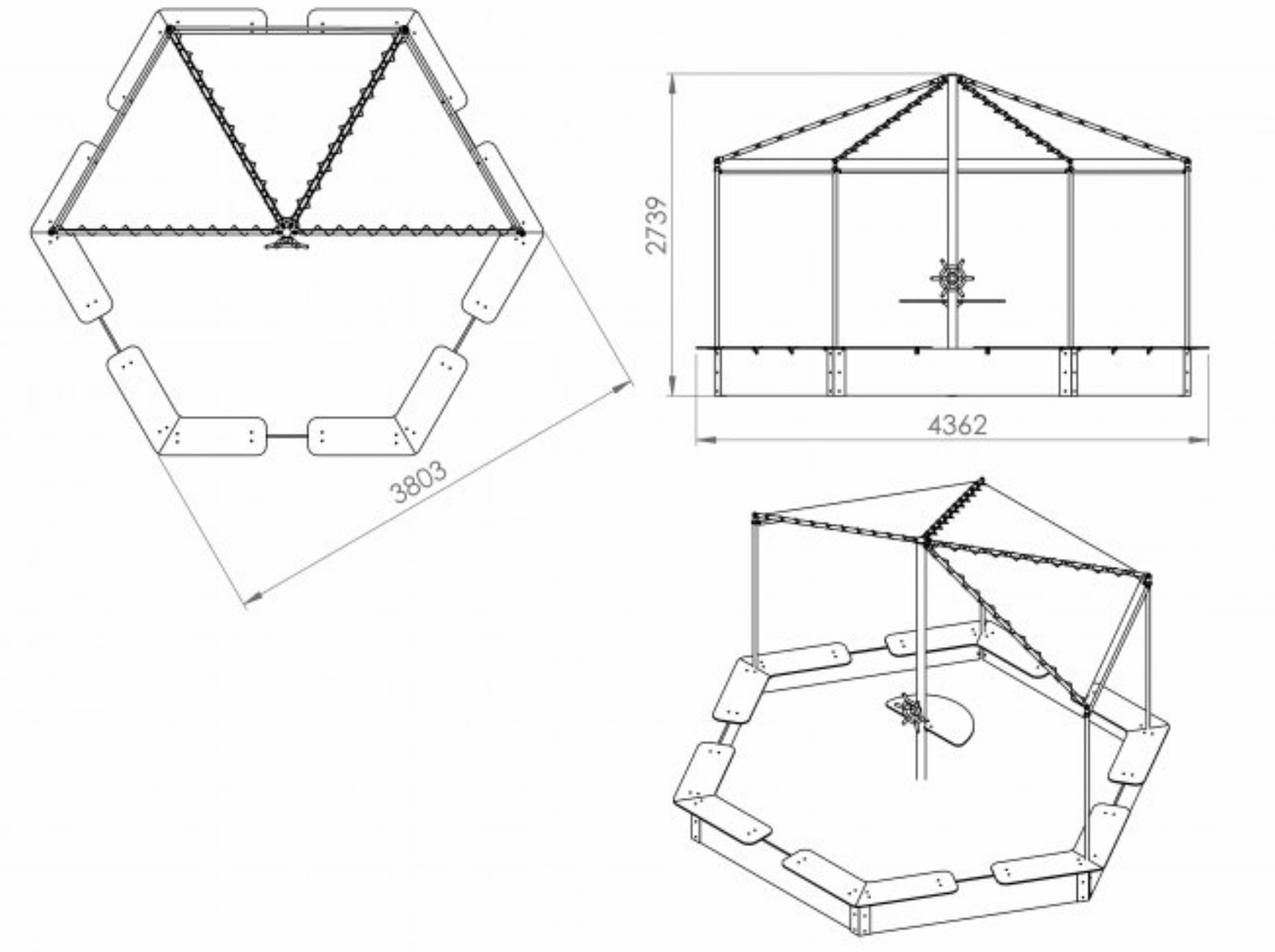Kuva tuotteesta Kuusikulmainen hiekkalaatikko katoksella CCP-103, mitat