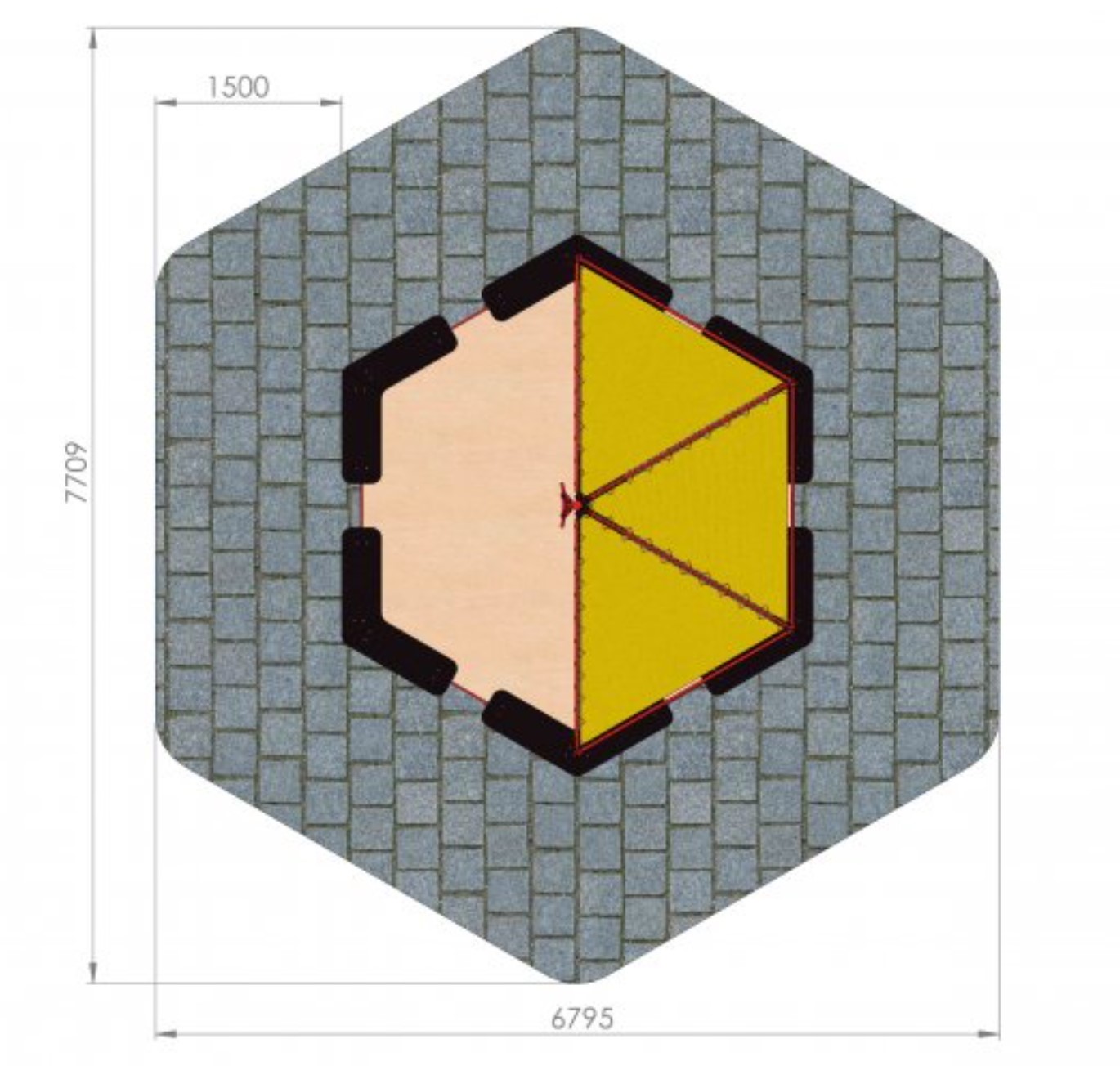 Kuva tuotteesta Kuusikulmainen hiekkalaatikko katoksella CCP-103, Turva-alue