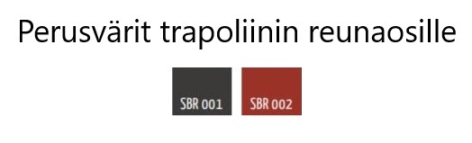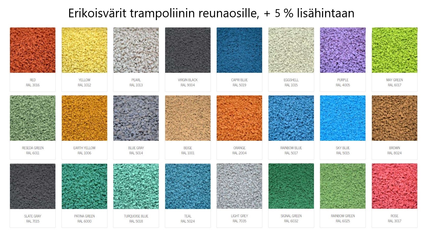 Perusvärit trampoliinin reunaosille: SBR 002 punainen, SBR 001 musta