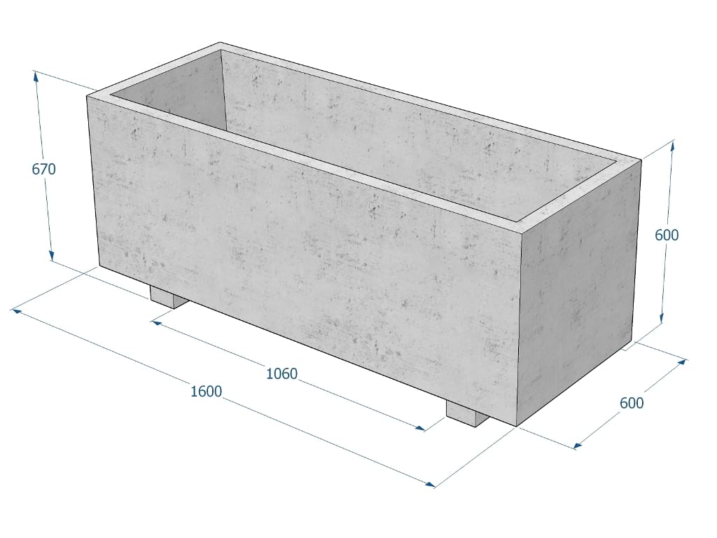 Mitat 1.60 × 0.60 × 0.67 m (metri)