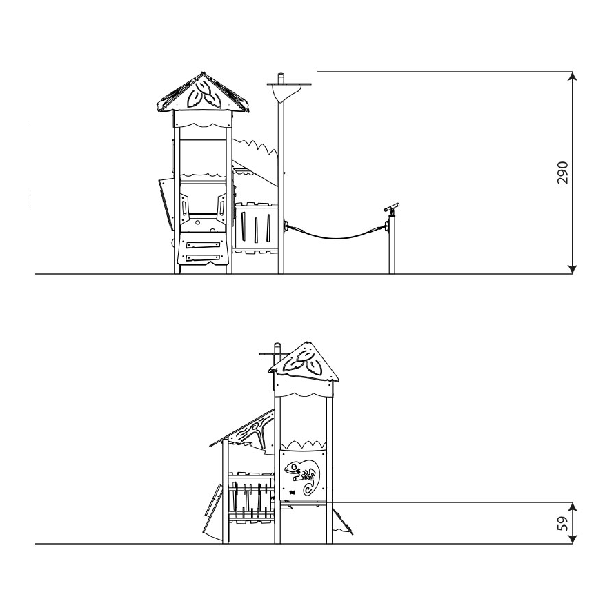 Osastot: Inklusiiviset leikkivälineet, Leikkikatokset, Leikkivälineet, Linnat, Monitoimivälineet, Viidakkoteema